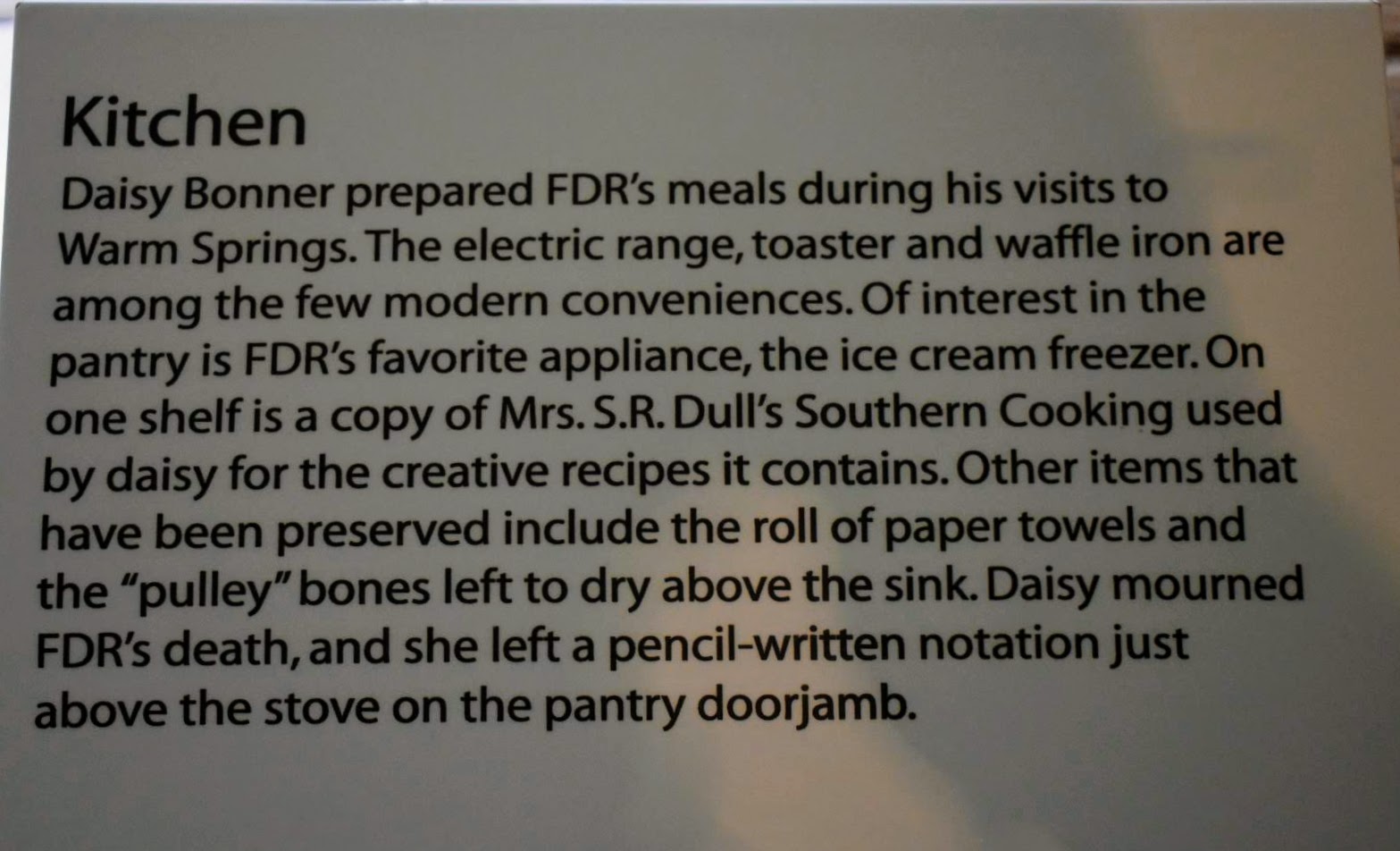 I enjoyed immensely my time at the ‘Little White House.’ While FDR was in no way a perfect person (he had his flaws as we all do) he led this nation through difficult and trying times. First, through the Great Depression and then the Second World War. He was more than a politician, he was a statesman, someone who got things done. This visit only heighten my respect for the man, and left me feeling honored that I was able to get a closer glimpse of his life.