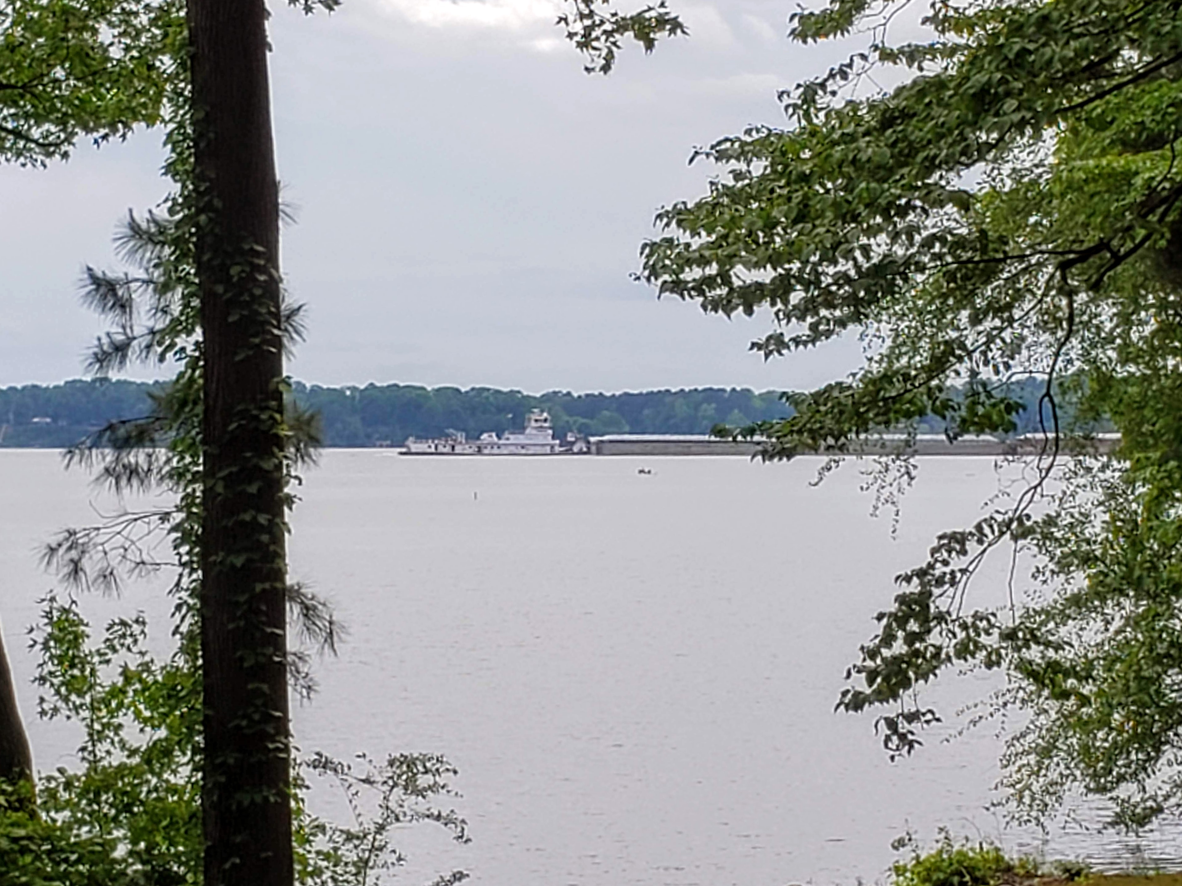 The campsite sits on the banks of the Tennessee river. I got to see a barge floating down it this afternoon.