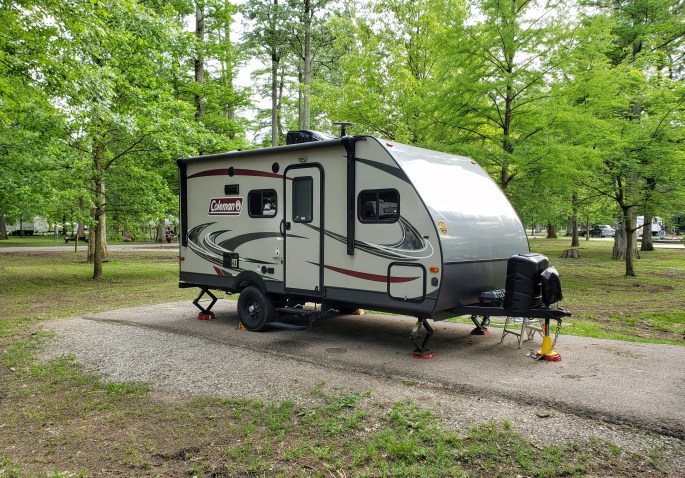 Setup the trailer and I was home for the next week. The site is level and water/power hookup seem good. The site has a nice view of the lake and yes, decent Verizon service. OTA TV reception was limited to three channels but I do have Amazon Prime and Netflix (I watched Cool Hand Luke last night).